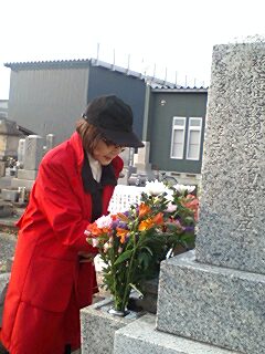 『伴淳百年祭』前日の25日〈金〉に、淡路恵子さんが米沢市にいらっしゃいました。まず、極楽寺に直行。伴淳さんのお墓に花をあげて手を合わせる。