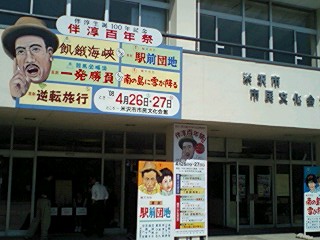小野川温泉寿宝園での夕食会は時を忘れて淡路さんの貴重なお話にただただ耳を傾けたのでした。この場自体がトークショーでしたね。26日は、朝から晴天。上映会にとっては曇り空で小雨混じりくらいがちょうど良いのですが、生憎 淡路さんは超がつくほどの晴れ女。見事に実証されました。