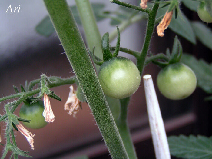 5月19日、ミニトマトは、黄色い花が咲いて、その後に実がなりだした。