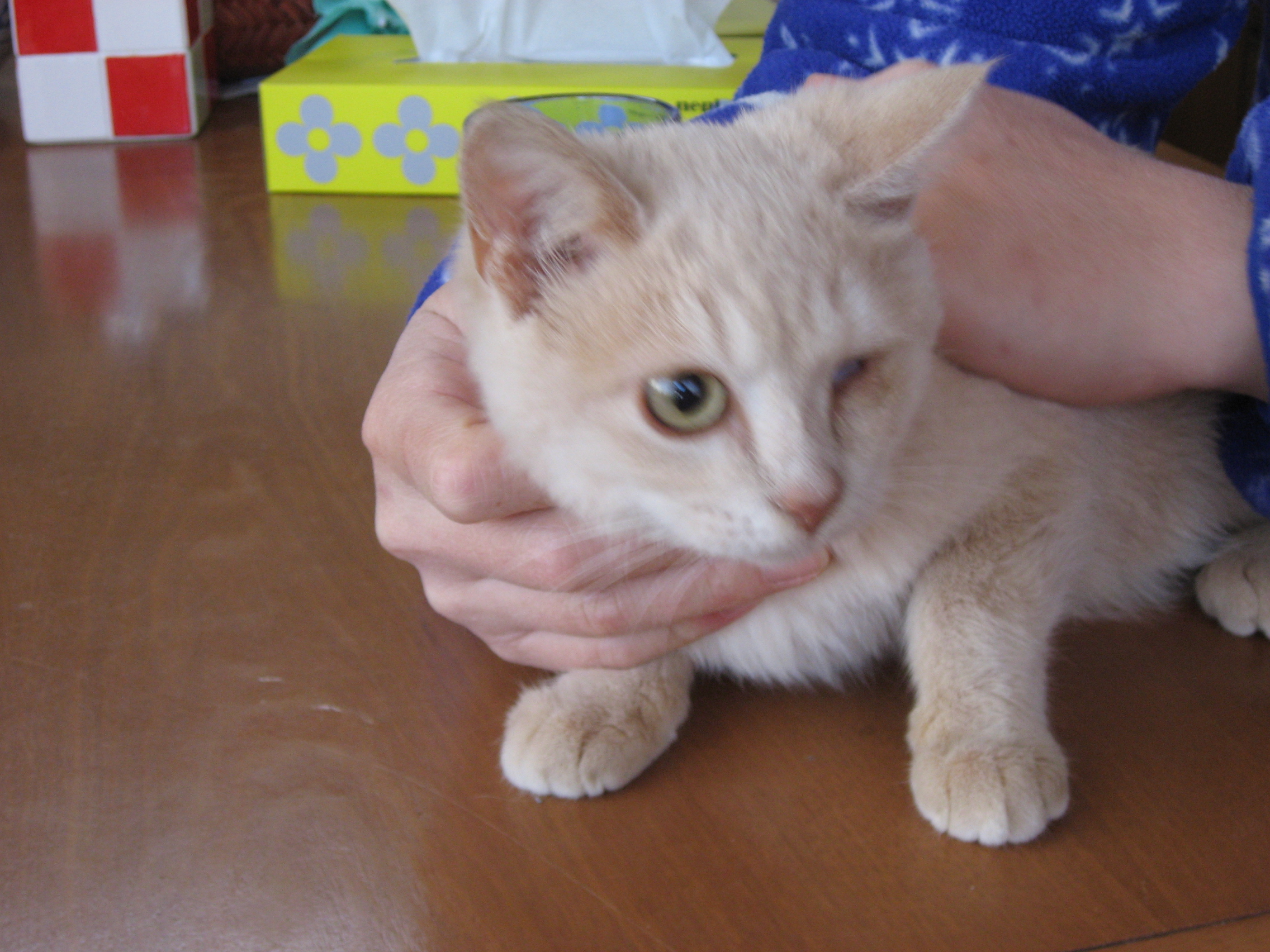 保護当時、片目はふさがっており、「猫風邪?」と思い病院にいくと眼球漏。