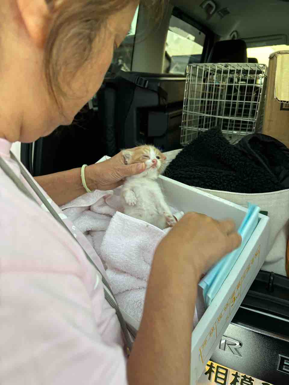 ミルクも哺乳瓶もない。保護するか、ママ猫に返すか…悩みに悩んだ末、もう一度チョコママに連絡して、引き返してきてもらいました。