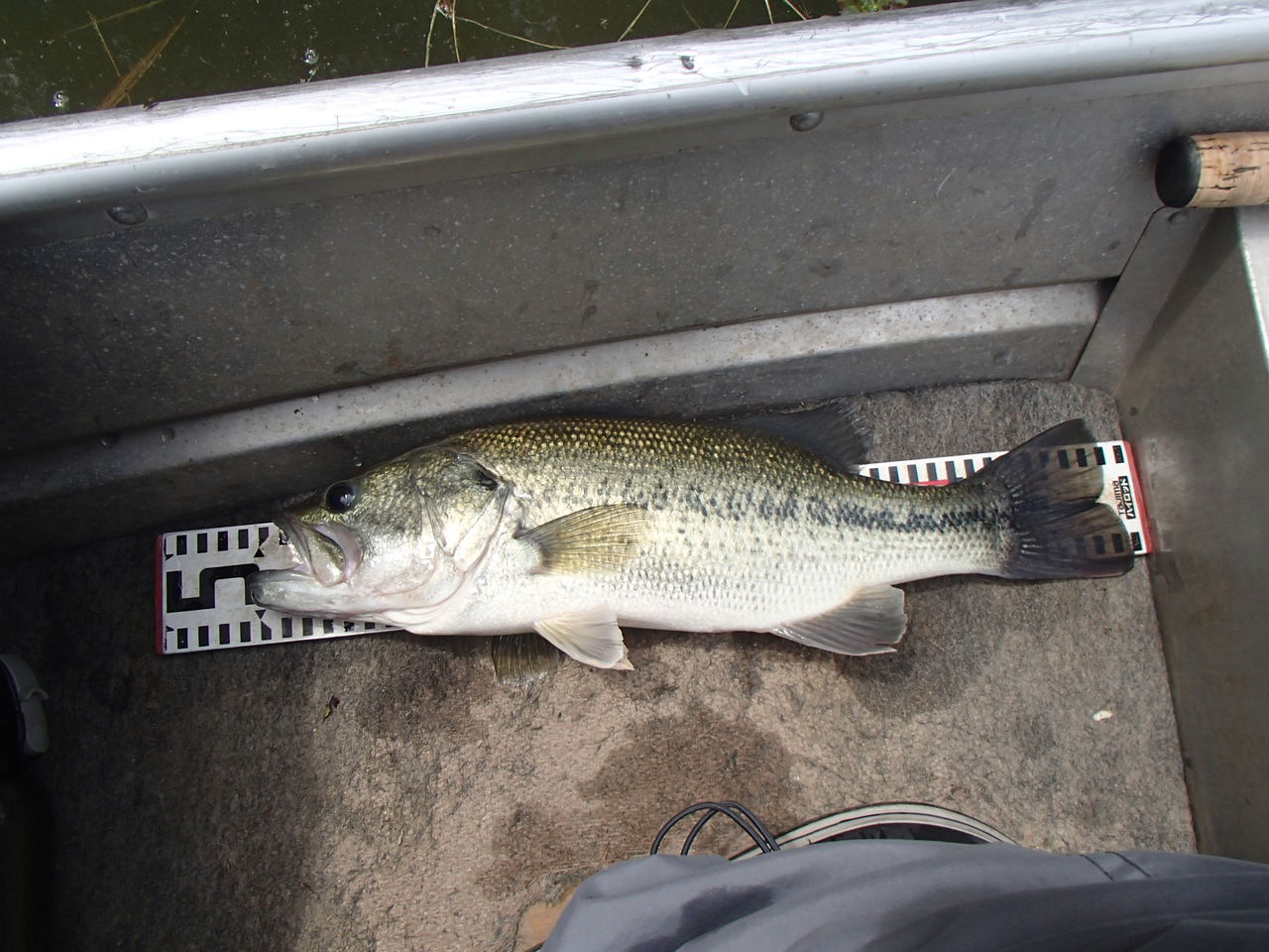 まずはスピナーベイトで広く探りバスの状態をチェック