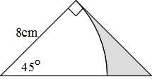 半径8cmで中心角45°のおうぎ形の面積から、底辺8cmで高さが4cmの三角形の面積をひけばよいことがわかるので、