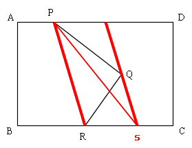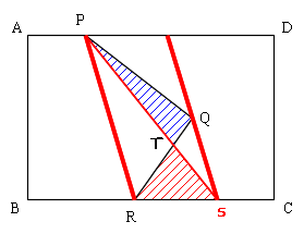 左図のように、△PTQと△TRSの面積が等しければ、区切りなおす前と面積は変わらないままだといえます。