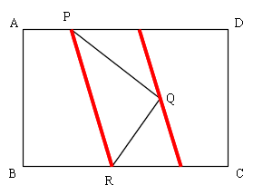 例題2:長方形ABCDの土地が折れ線PQRで2つの部分に分けられてい