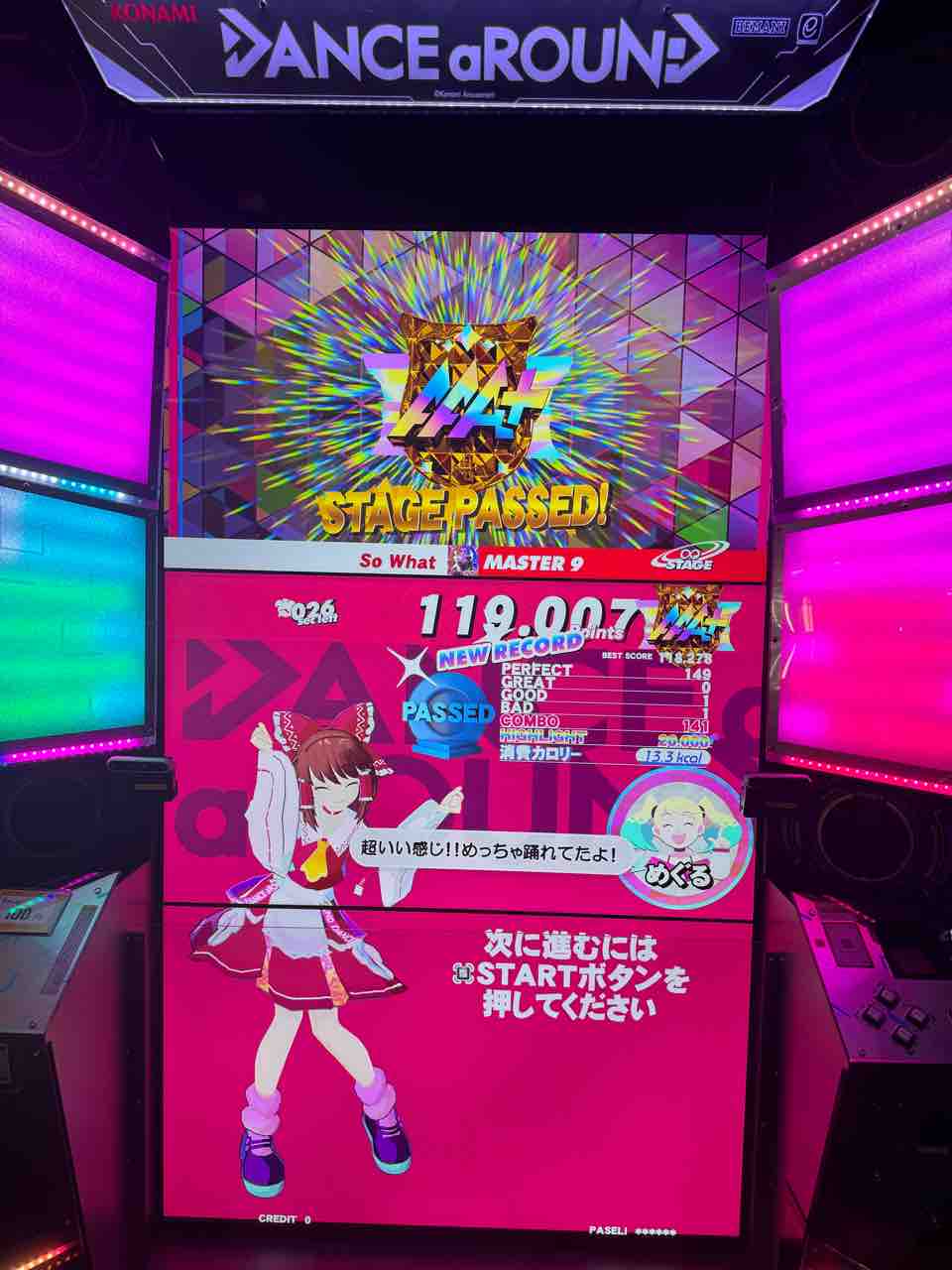 DANCEaROUNDプレイしましたが、スコア更新譜面はなし😅