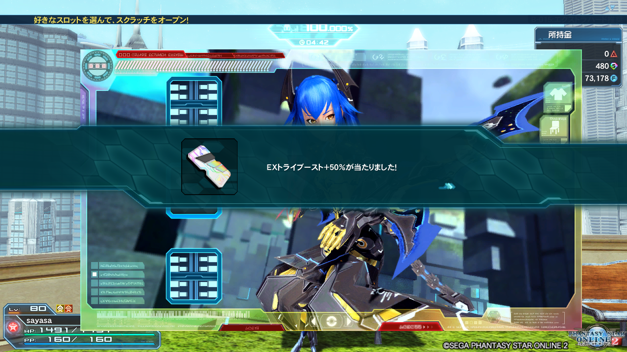 SGスクラッチ「アークスバトルウェアセレクト」を1回引いて、出た物を使用して記事を書く、といった企画になります