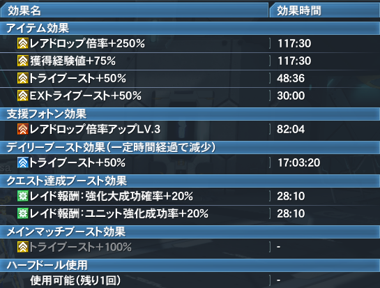 とりあえず、発生中の効果は上記の画像の通り、後は何かしら収穫があれば言う事無し!