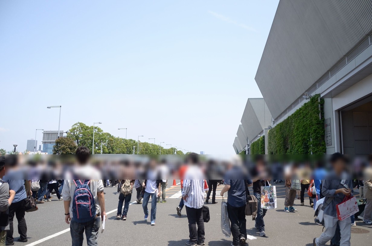 少なかった感じです。というのも、屋外のコスプレゾーンは、昼過ぎまで人気サークルさんの待機列