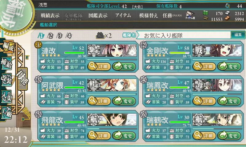 燃料と鋼材が不足しがちな貧乏提督です、空母連れているんですけど逆にボーキはあまり減らないですね