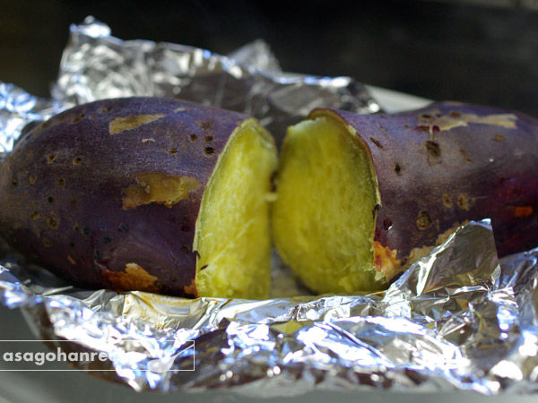 どうしても焼くのに時間がかかるので、朝ご飯に作る場合は、余裕がある日に作ってください!弱火でじっくり加熱すると、甘みが増して美味しい焼きいもになりますよ。