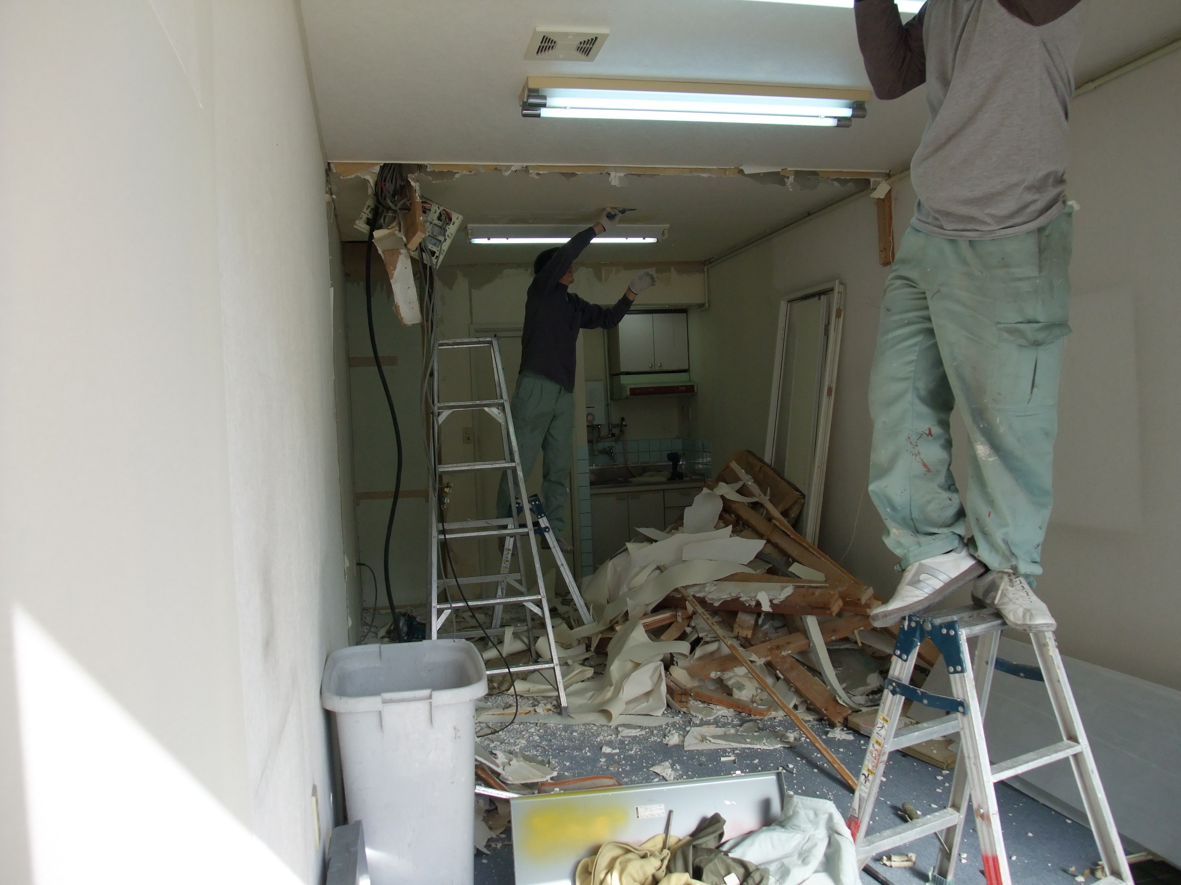 久々のブログ更新です。先日名古屋まで解体・木工事 左官工事 塗装工事 タイル工事の5項目の仕事(規模は小さいですけど)を一日でやってきました。名古屋からの依頼でしたが、5業者全部呼ぶと工事金額が高くつくので、安い方法を考え、タイル工事業者以外の仕事は自社の職人で施工しました。