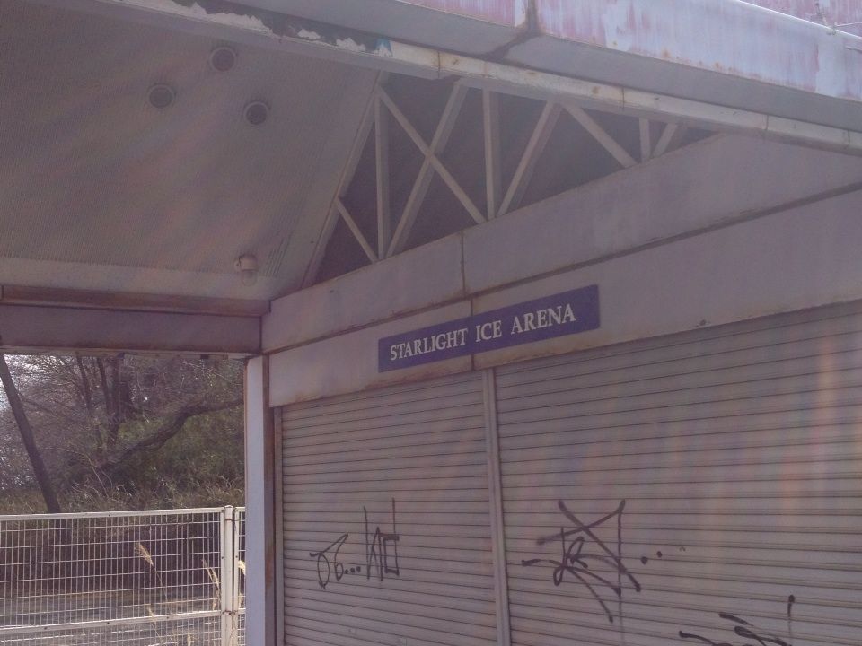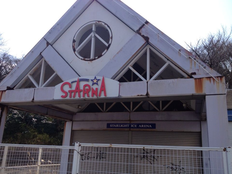 アイスアリーナの文字。この施設が出来たのはバブル期でしょうか。筆者が生まれた平成8年時点で現役施設だったのかも分かりません。この施設を利用したこともありません。ただ「プラネタリウム」の廃墟と聞いていました。