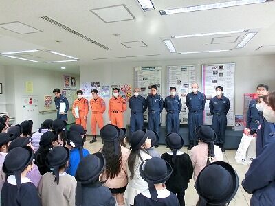 勤労感謝の日を前に、年長組が私たちの周りで働いている方について学ぶために、11月6日(木)に消防署、10日(月)警察署にそれぞれ職場訪問し、感謝の気持ちを込めてプレゼントをお渡ししてきました。それぞれの職場の方が、やさしく案内して頂き、園児たちも消防署・警察署の大切な役割や様子を直に見学することができました。