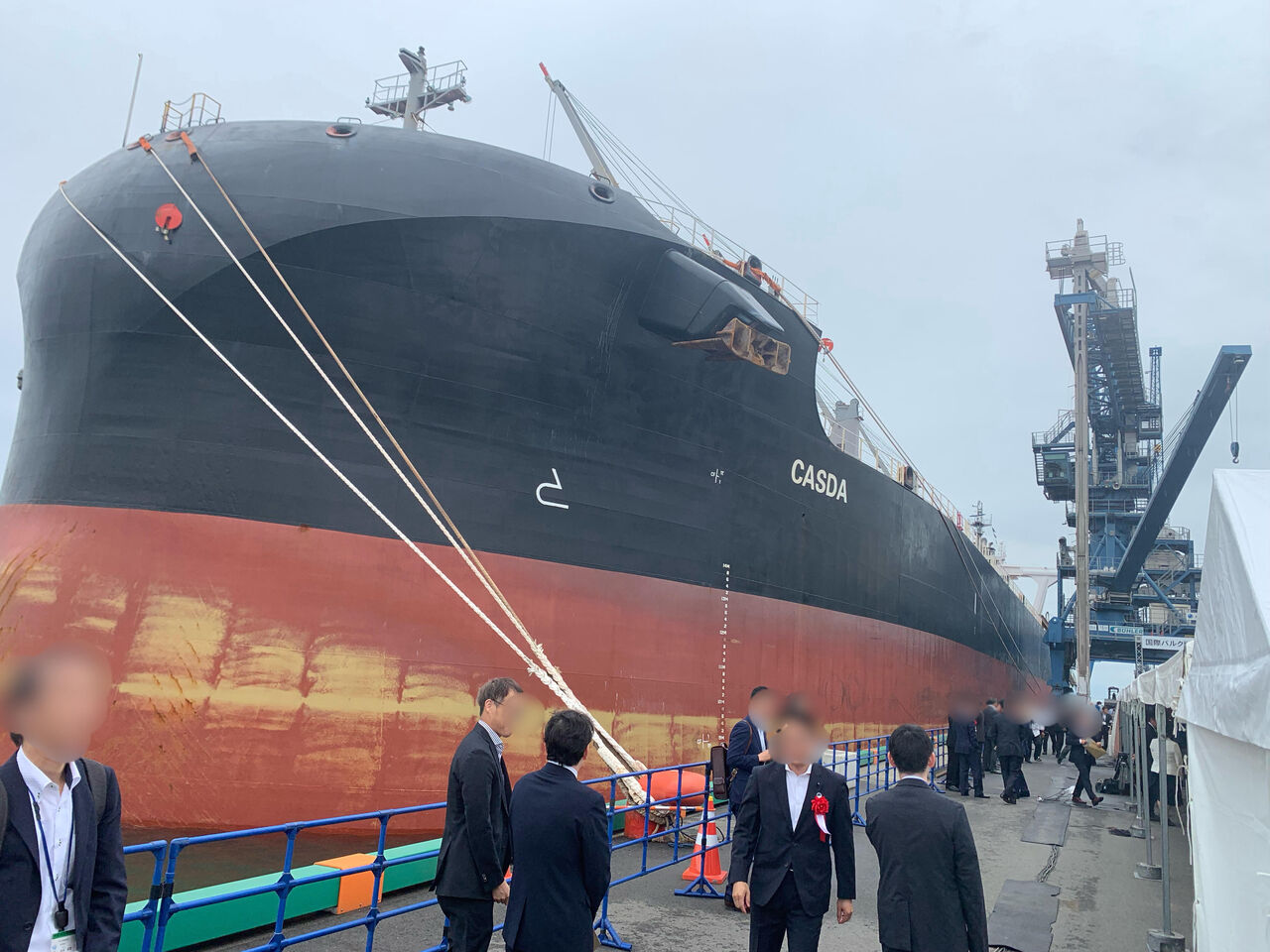 こうして政府により計画的に大型化する「国際戦略バルク港湾」に水島港は穀物(玉島地区)と鉄鉱石(水島地区/JFE西日本製鉄所)で指定され、航路や港の浚渫や、岸壁の整備が進められてきました。 この日はその玉島地区の設備の完成式でした。