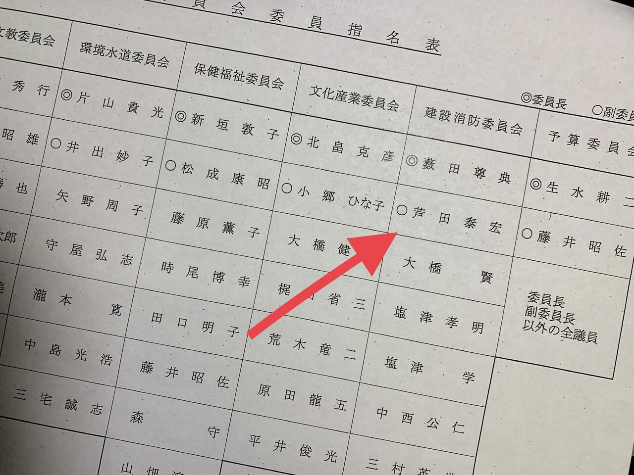 当選回数順にならんでおり、新人の私は後ろから3番目にいます。