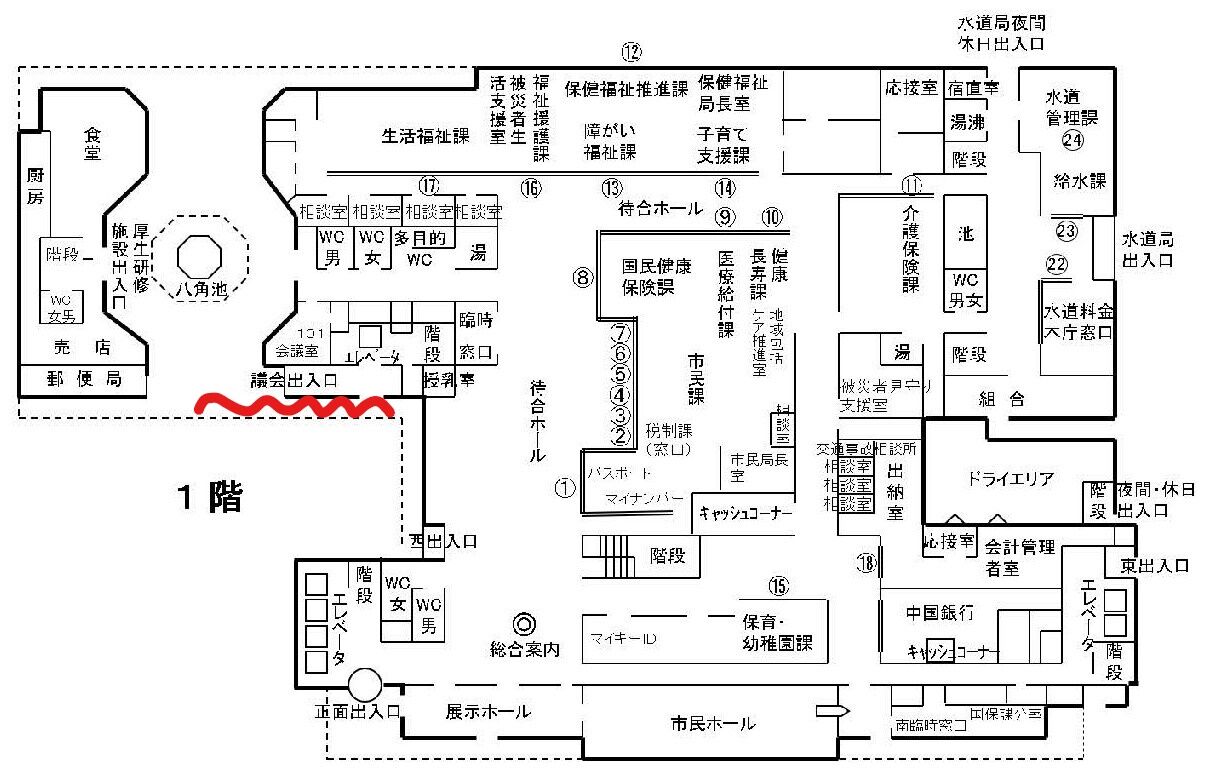 議会棟は食堂やセブンイレブンの近くに入り口があります。