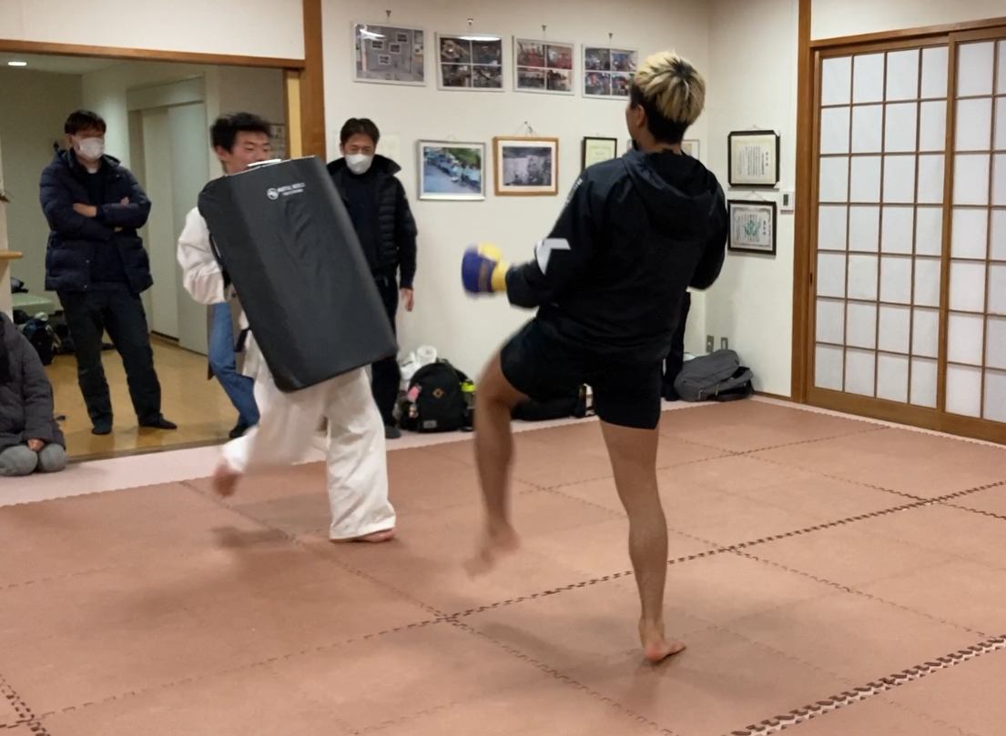 先週のブログでもご紹介したとおり高松支部に、武勇会館高松ジム所属プロキックボクサーの丸山選手を迎えてセミナーを行いました。