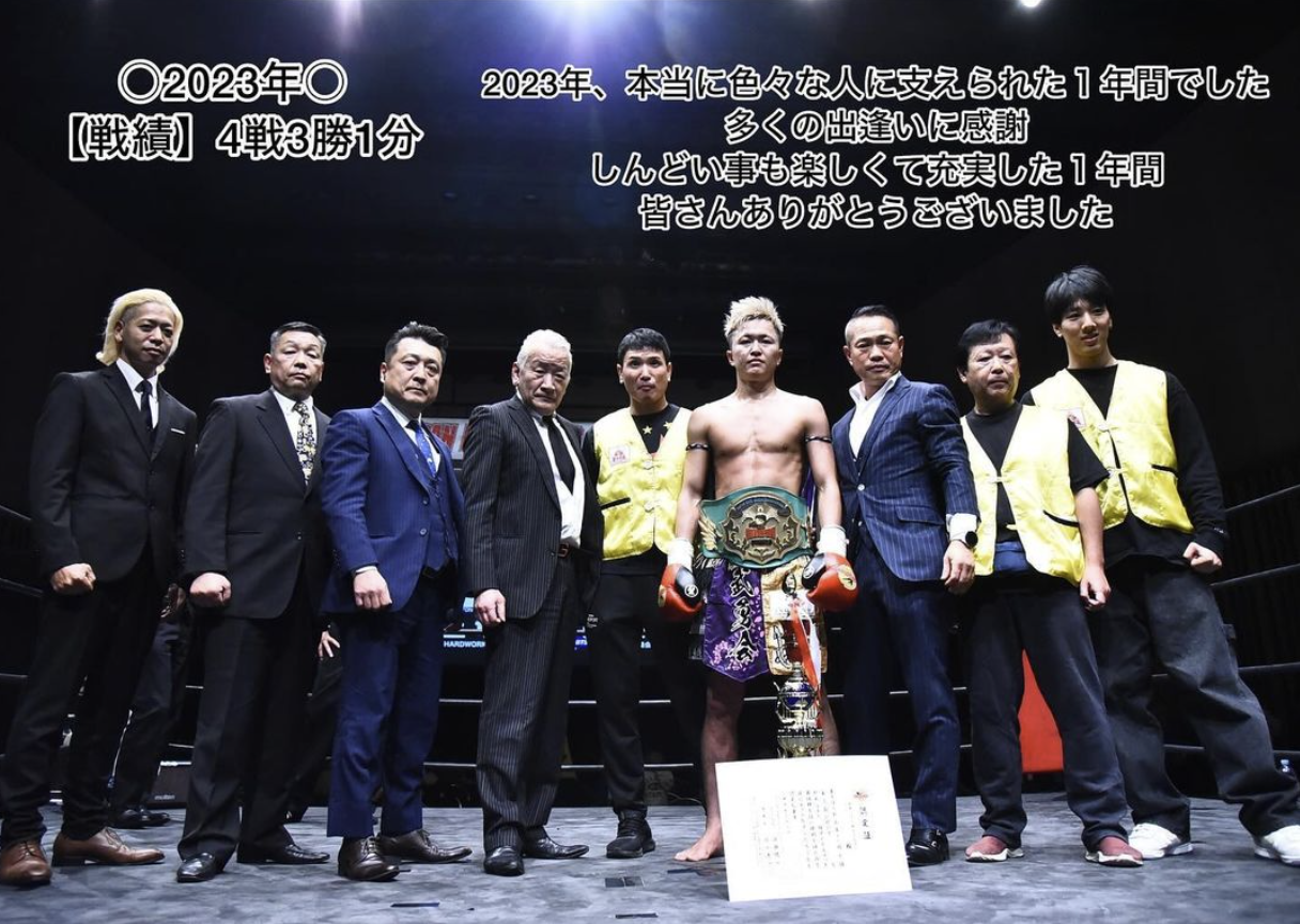 最後に丸山選手SNSよりJAPAN KICKBOXING INNOVATION ライト級の王座を獲得した時の写真をご紹介。