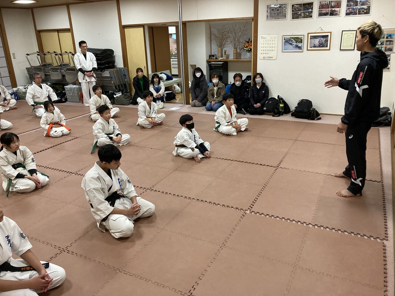 高松支部ではプロキックボクサーと直接関わったことのない道場生がほとんど。なので始めて丸山選手を迎えてセミナーを開始するも皆、緊張の面持ち。