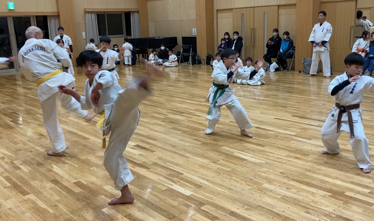難しい空手特有の移動ではなく、ステップを用いたトレーニングなので楽しく移動稽古が行えたと思われます。