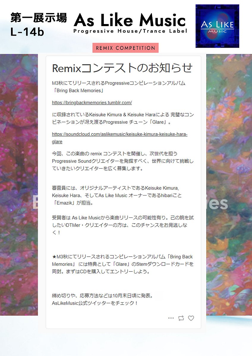 As Like Musicでは新譜2種を出品致します。(ダウンロード版検討中)