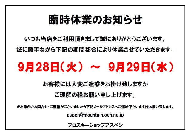 平素よりPROSKISHOP ASPENをご利用頂きまして