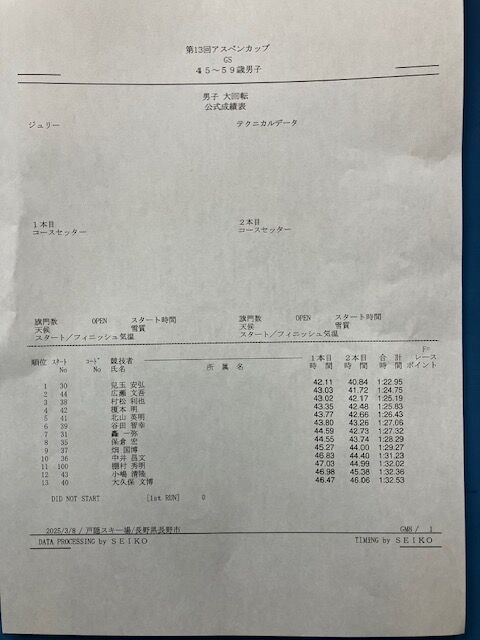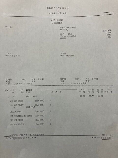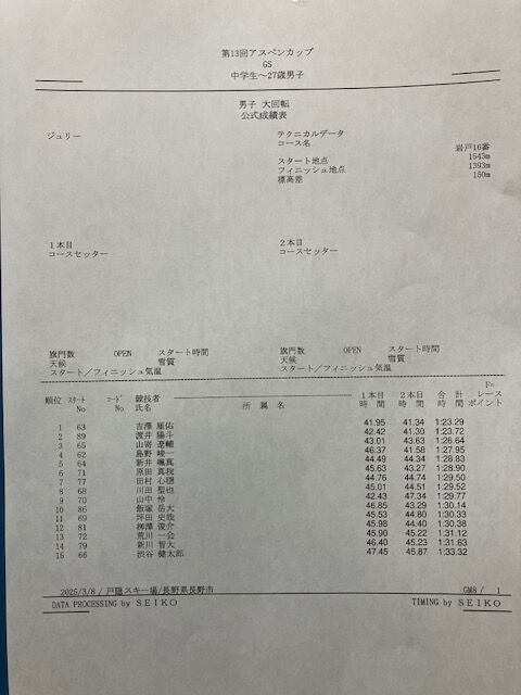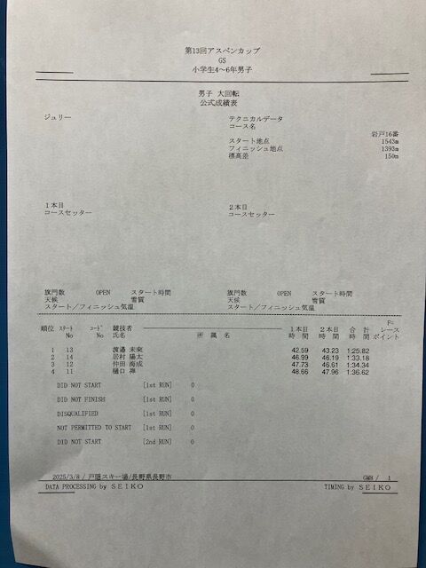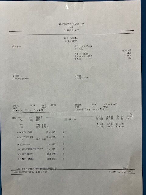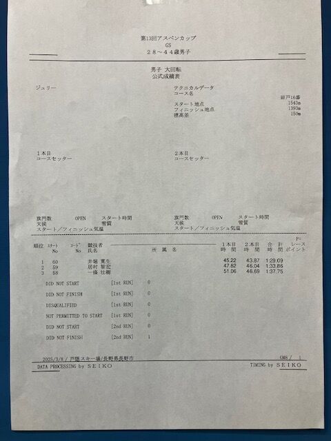 アスペンカップ リザルト