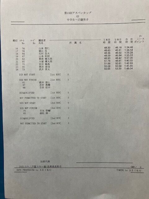 アスペンカップリザルト