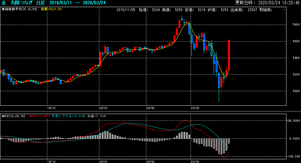 実は昨日の日中、5300円で新規売りし、夜間で利食い撤退としました。