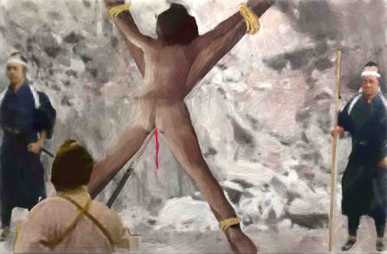 その美代の姿を満足そうに見ていた奉行は、磔柱の横に立っている執行人に目配せをした。そして