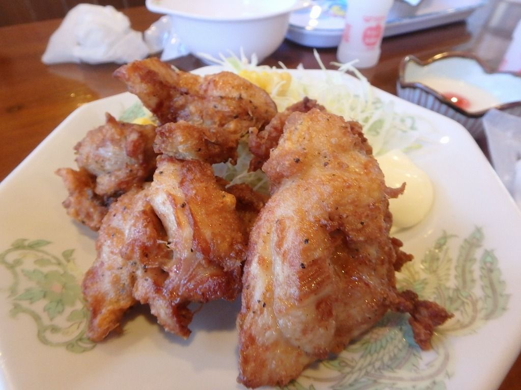 セットのから揚げはやや小ぶり。