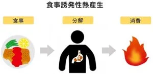 「痩せたいから」といって食事量を極端に減らしたりすると、食事誘発性熱産生から得られる1割程度の消費エネルギーを失うことになります。