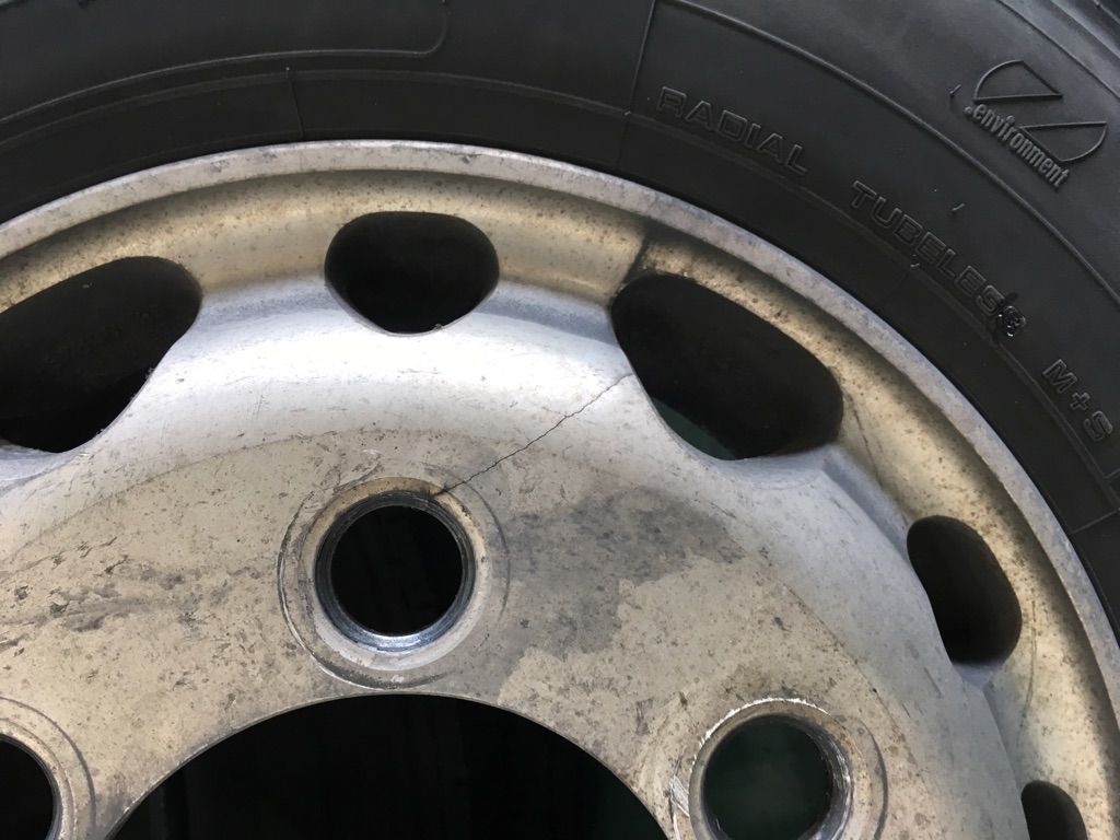 最近車検で入庫されたトラックはホイールにヒビが入っていました。