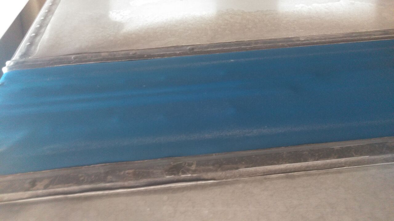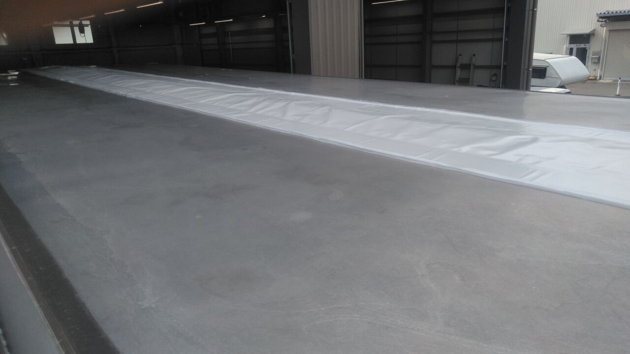 トラックのウイング車の天井中央部のセンターシートが劣化等で、ひび割れや、穴あきが多くみられます。