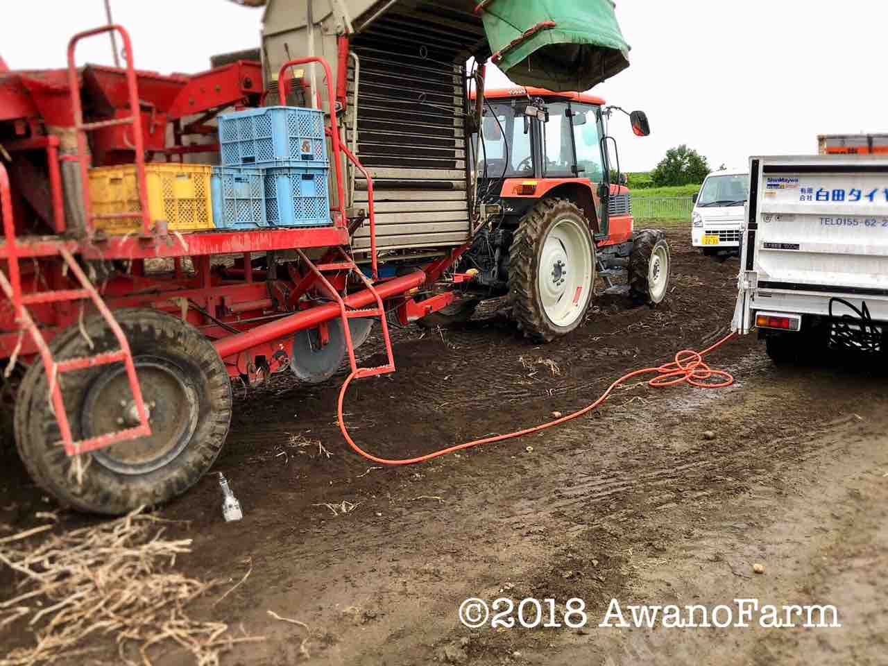 カルビーポテトさんに出荷を終えて、ハーベスターを倉庫に格納しようとしたら…