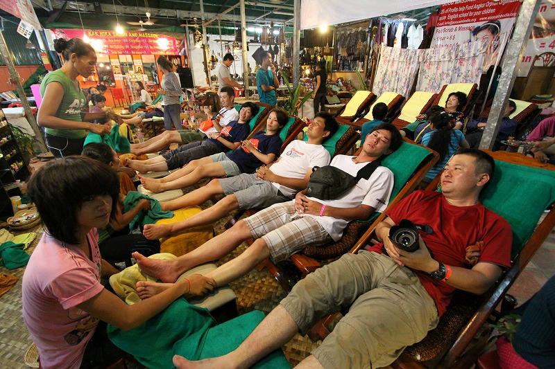 カンボジアのナイトマーケットにて 佐々木選手放心状態