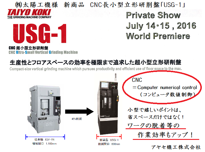 CNC超小型立形研削盤「USG-1」のご案内です。