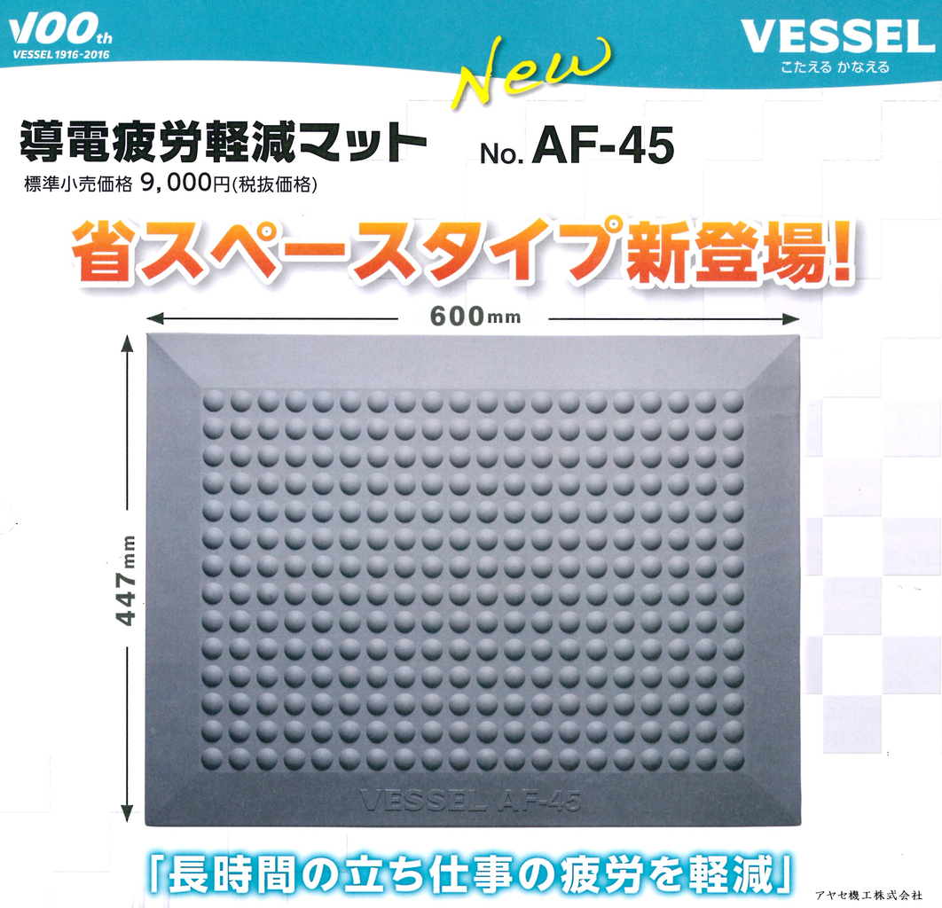 本日は、ファスニングツールのリーディングカンパニー㈱ベッセル様の追加商品導電疲労軽減マット「省スペースタイプ」のご案内です。