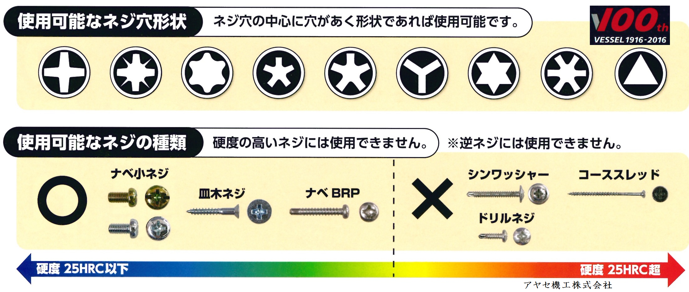 キャップボルトなど硬度の高いネジや逆ネジには使用できませんので、予め御了承下さい。