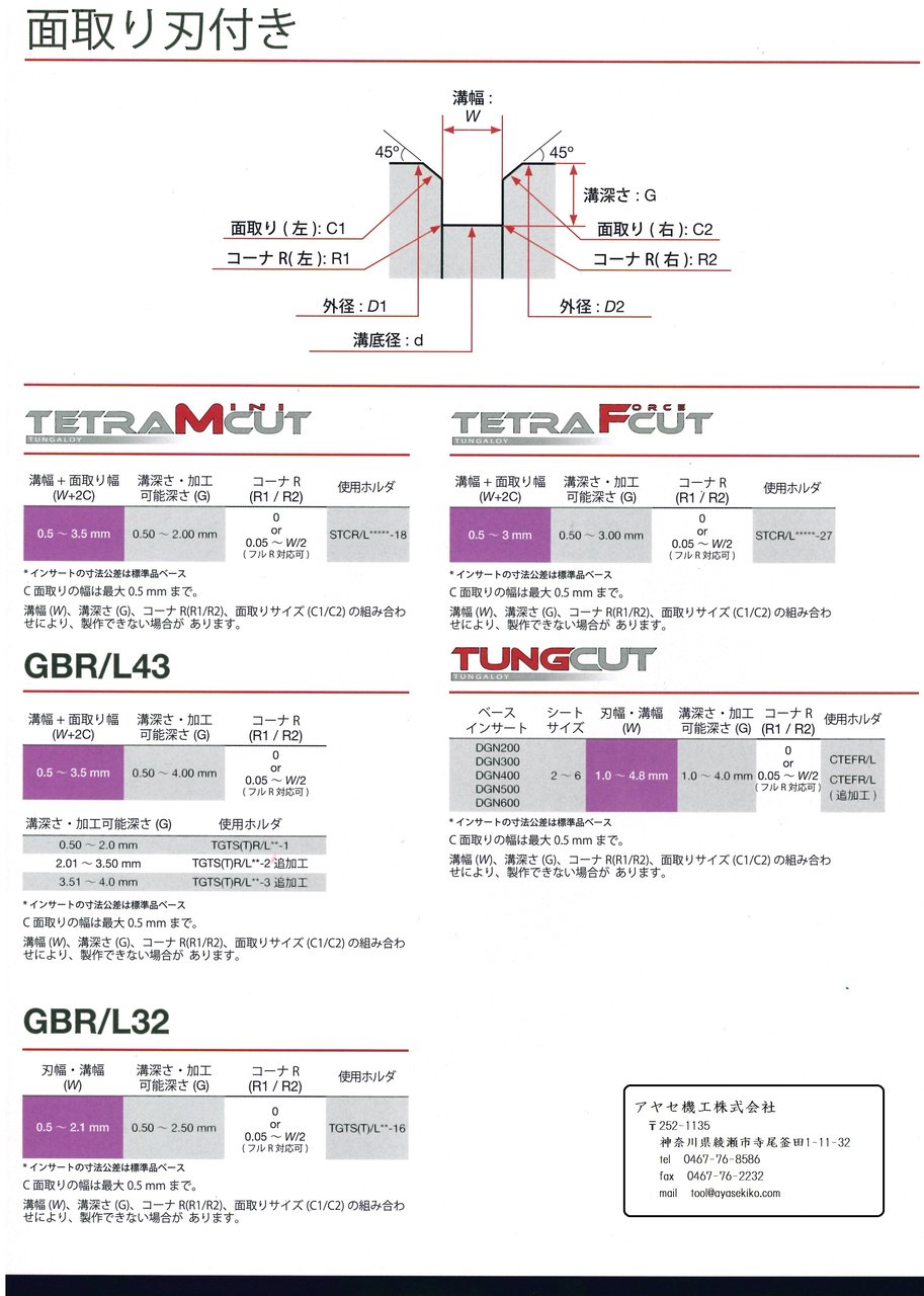 追加工品目:刃幅・コーナR特殊、面取り刃付き
