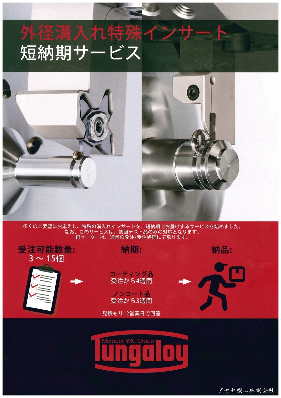 本日は、㈱タンガロイ様の新サービス「外径溝入れ特殊インサート短納期サービス」のご案内です。