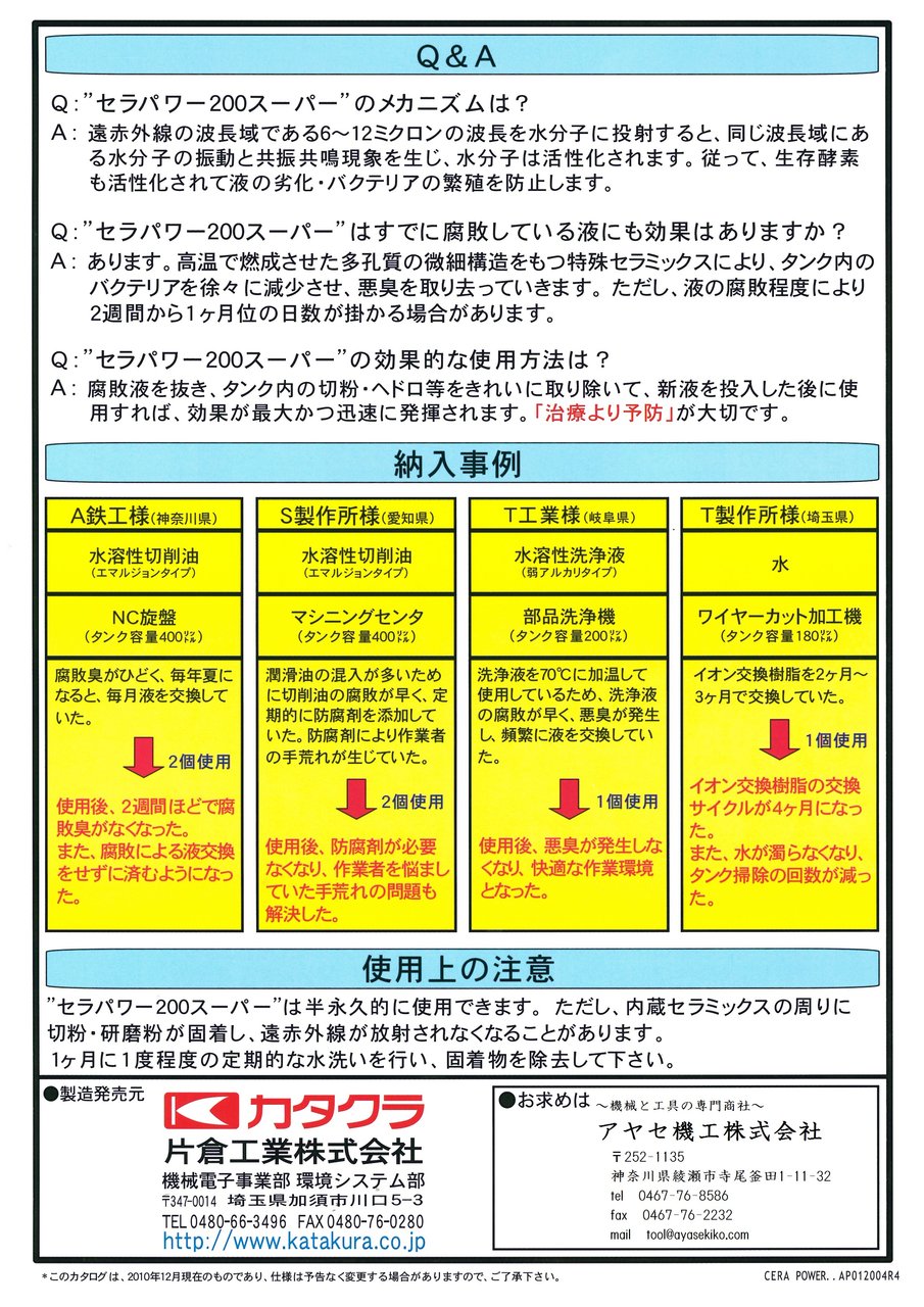 本日は、片倉工業㈱機械電子事業部環境システム部様のおすすめ商品セラパワー200スーパーのご案内です。