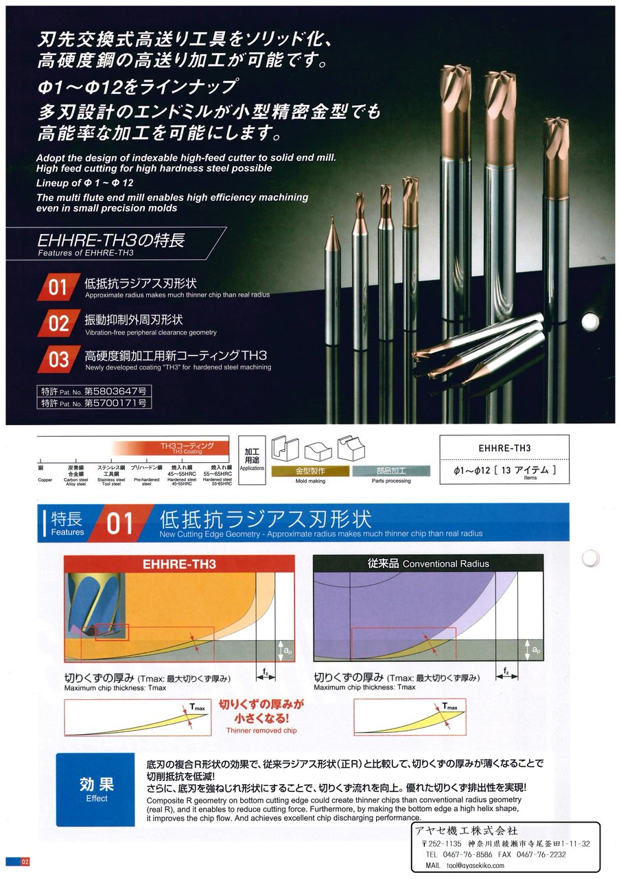 本日は、三菱日立ツール㈱様 の新ブランドMOLDINO(モルディノ)様の新商品、高硬度鋼加工用 高送りラジアスエンドミル「EHHRE-TH3」のご案内です。