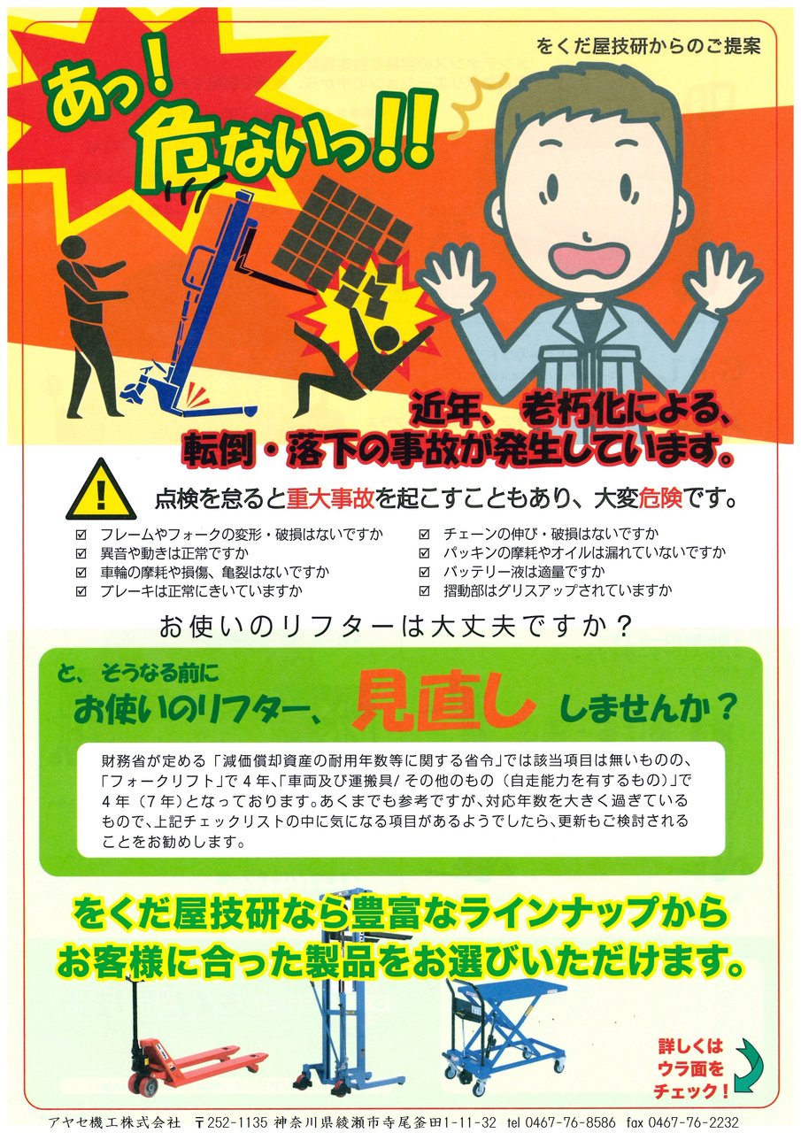 事故を未然に防ぎ、安全な環境で作業をする為にも、リフターの点検・見直しのきっかけにしていただければと思います。