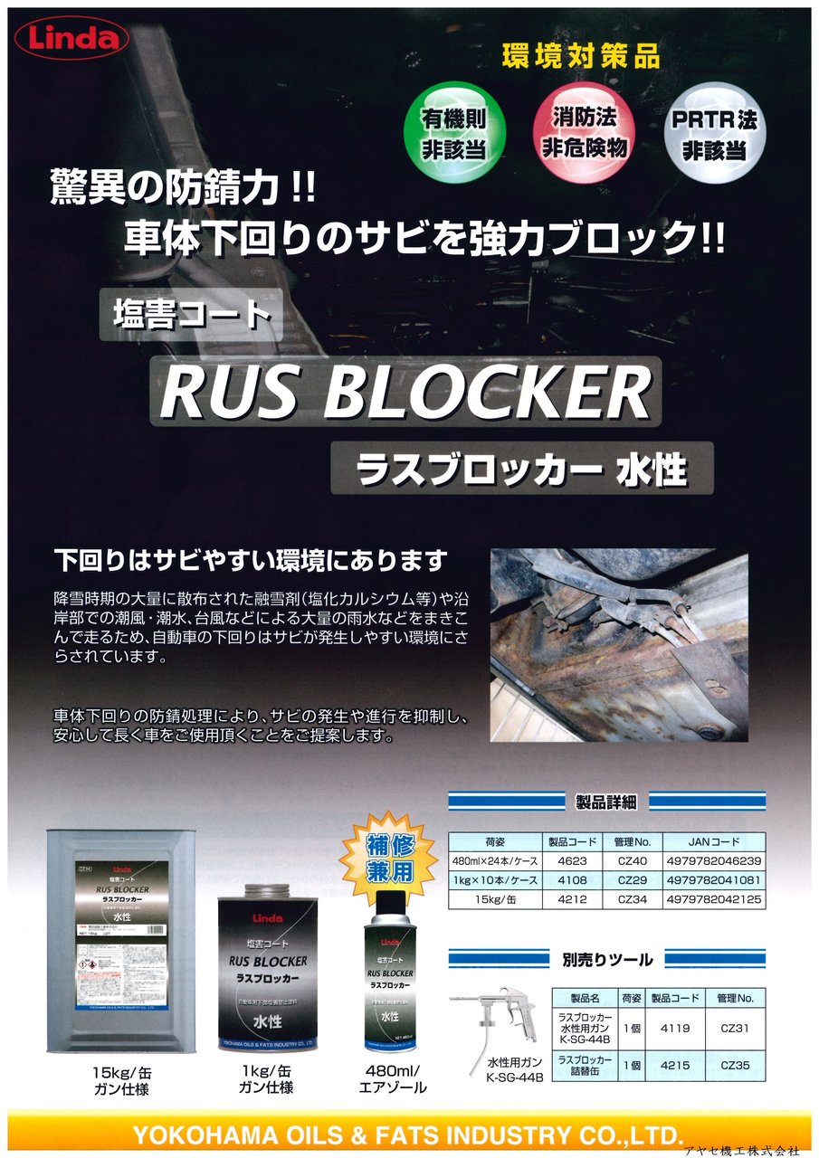 車体の下回りや、配管回りの錆をブロックする商品です。