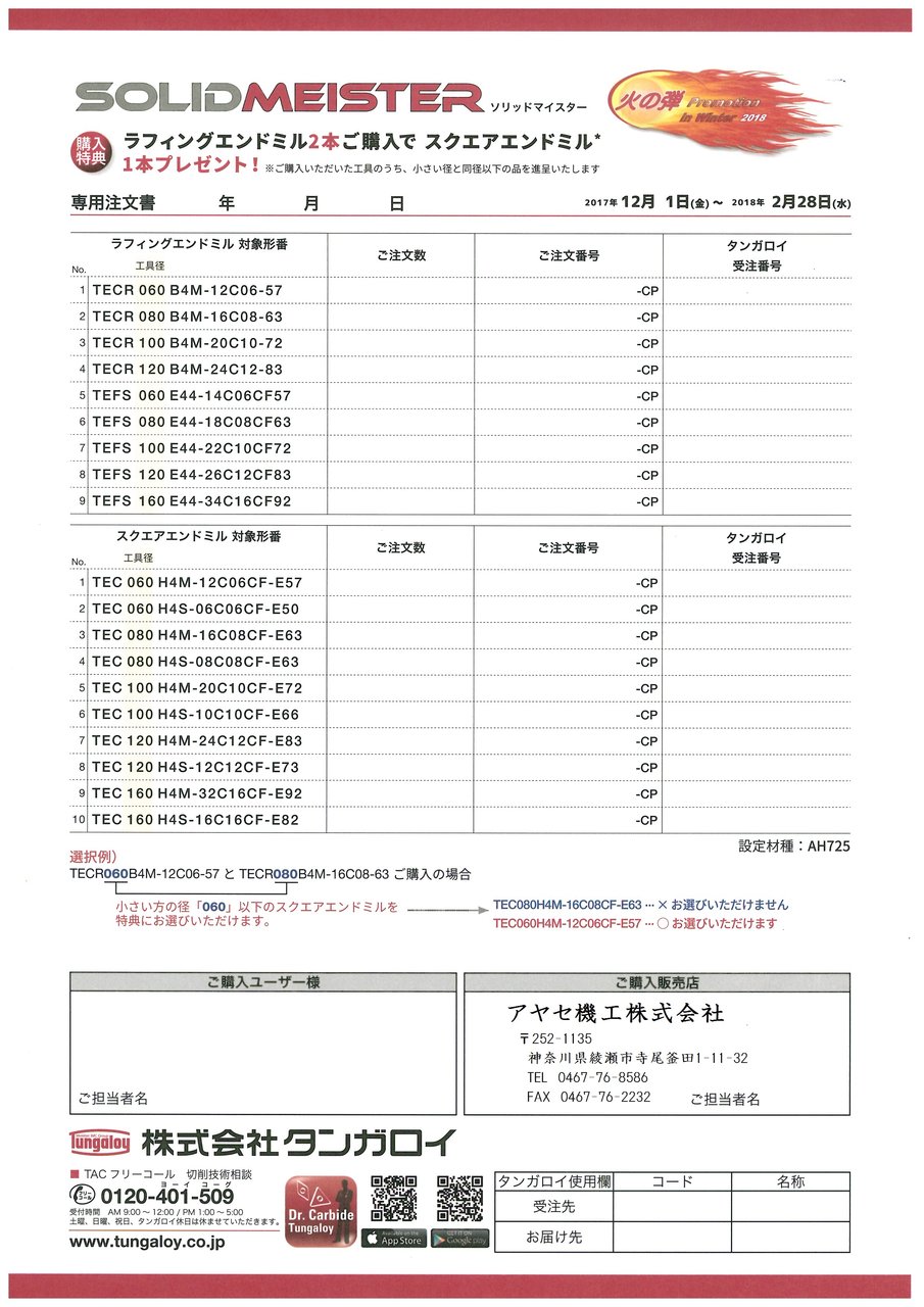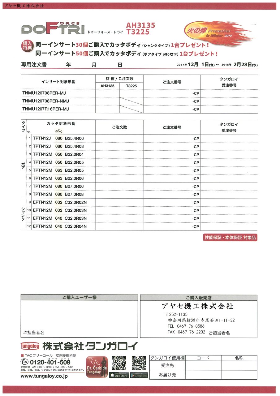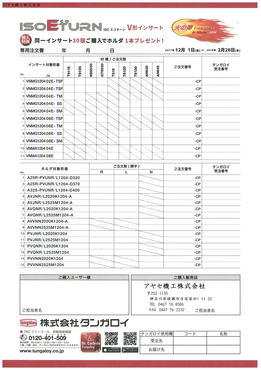 ㈱タンガロイ様の商品・キャンペーンに関する、お見積、ご注文はアヤセ機工㈱へ!