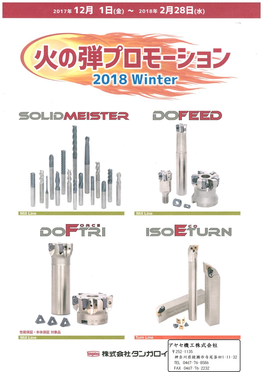本日は、㈱タンガロイ様の冬のキャンペーン・火の弾プロモーション2018Winter(冬)のご案内です。
