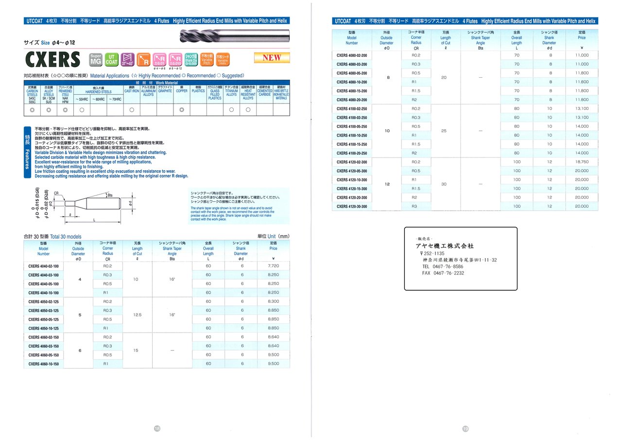CXERS(外径4、コーナー半径R1、刃長10、全長60、シャンク径6、定価¥8,250-)