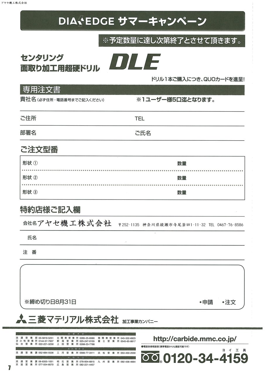 本日は、 三菱マテリアル㈱加工事業カンパニー様のキャンペーン、DIAEDGサマーキャンペーンのご案内です。